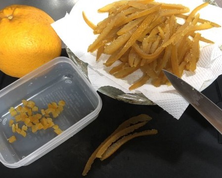 第一弾試作の後に3回の改良を加えて ほぼ満足なレベルに到達したので 新メニューとして出したところ舌の 肥えた常連客から高評価を得られた しかし更なる高みを目指す店主には 市販オレンジピールの風味がやや不満 で敷地内で採れる八朔の皮を薪スト ーブで煮込んでみたら・・・ ![]() !!!甘苦旨い これは行けるっ 自家製八朔ピールのハッピーパウンド ケーキとしてデビュー決定! 興味のある方は是非ともご賞味を |